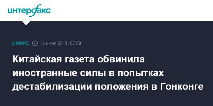 Китайская газета обвинила иностранные силы в попытках дестабилизации положения в Гонконге