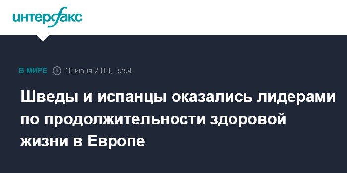 Москва. 10 июня. INTERFAX.RU - Шведы и испанцы возглавили список европейских наций с наибольшей ожидаемой продолжительностью здоровой жизни, сообщает в понедельник агентство EFE со ссылкой на испанскую организацию Funcas.