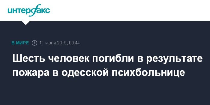 Москва. 11 июня. INTERFAX.RU - Шесть человек погибли в результате возгорания в психиатрической больнице в Одессе на Украине, сообщило местное издание "Думская".