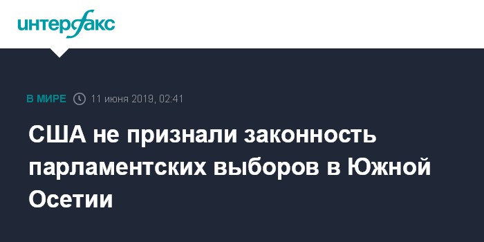 "США не признают легитимность так называемых парламентских выборов, прошедших 9 июня в регионе Грузии - Южной Осетии и не будут признавать их итоги", - заявила представитель госдепартамента Морган Ортагус во время брифинга.