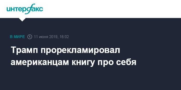 Москва. 11 июня. INTERFAX.RU - Президент США Дональд Трамп посоветовал американцам прочитать новую книгу о нем, которую написали его знакомые.