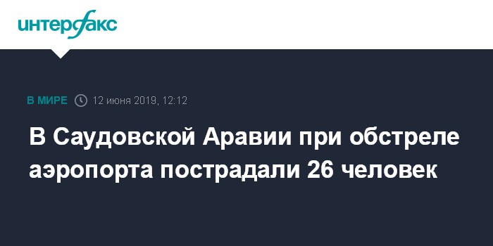 Москва. 12 июня. INTERFAX.RU - Повстанцы-хуситы выпустили ракету по аэропорту города Абха в Саудовской Аравии, в результате ранения получили 26 человек, сообщает в среду телеканал Al Arabiya со ссылкой на арабскую коалицию, возглавляемую Саудовской Аравией.