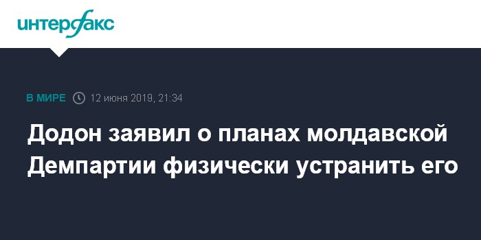 Москва. 12 июня. INTERFAX.RU - Президент Молдавии Игорь Додон заявил, что Демократическая партия готовит его физическое устранение.
