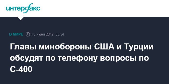Москва. 13 июня. INTERFAX.RU - Вашингтон рассчитывает на "достижение прогресса" относительно позиции Анкары по вопросу о приобретения Турцией у России зенитно-ракетных систем С-400, заявил исполняющий обязанности министра обороны США Патрик Шанахан.
