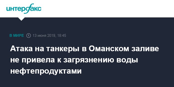 Атака на танкеры в Оманском заливе не привела к загрязнению воды нефтепродуктами