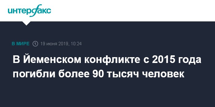 Москва. 19 июня. INTERFAX.RU - Около 91 600 человек стали жертвами войны в Йемене с 2015 года, сообщает в среду агентства Associated Press со ссылкой на доклад Проекта по оценке последствий вооруженных конфликтов (ACLED).