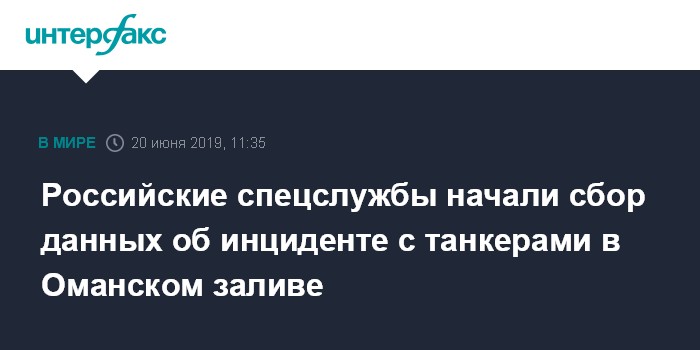 Москва. 20 июня. INTERFAX.RU - Российские спецслужбы начали сбор информации о нападении на танкеры в Оманском заливе, сообщил секретарь Совета безопасности Николай Патрушев. Данные, предоставленные иностранными партнерами, он назвал недостаточными.