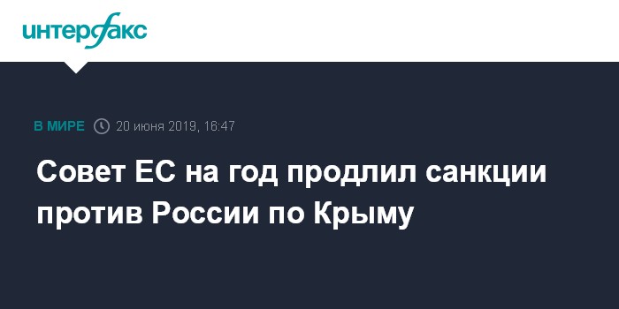 "20 июня 2019 года Совет продлил действие ограничительных мер, введенных в ответ на незаконную аннексию Россией Крыма и Севастополя, до 23 июня 2020 года", - говорится в документе, обнародованном в четверг.