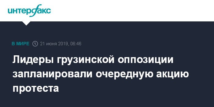 Москва. 21 июня. INTERFAX.RU - Лидеры грузинской оппозиции утром в пятницу заявили журналистам, что вечером планируют провести очередную акцию протеста у здания парламента.