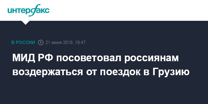 Москва. 21 июня. INTERFAX.RU - Гражданам РФ следует воздержаться от поездок в Грузию в целях личной безопасности, заявили в пятницу в МИД России.