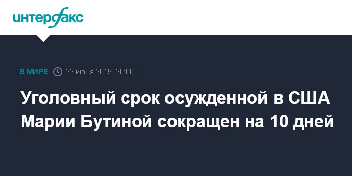Уголовный срок осужденной в США Марии Бутиной сокращен на 10 дней