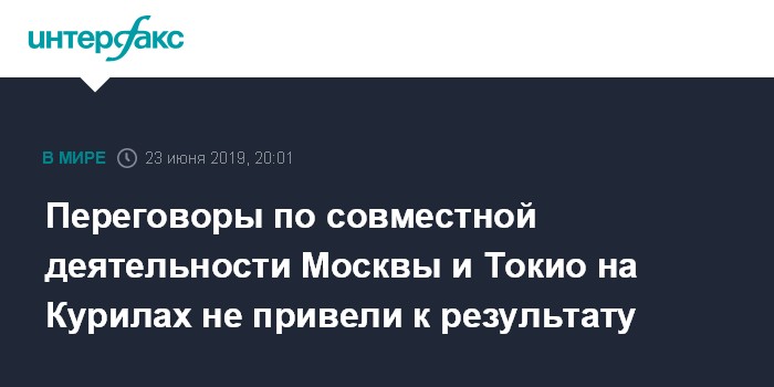 Москва. 23 июня. INTERFAX.RU - Маловероятно, что Россия и Япония смогут достичь какого-либо соглашения о совместной хозяйственной деятельности на четырех островах Курильской гряды, приводит японская газета Japan Times сообщение неназванных российских источников агентства Kyodo.