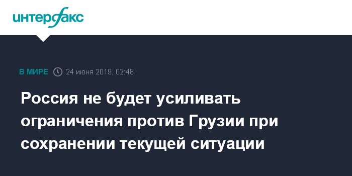 Россия не будет усиливать ограничения против Грузии при сохранении текущей ситуации
