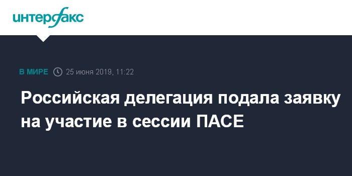 Москва. 25 июня. INTERFAX.RU - Делегация России подала заявку на участие в сессии Парламентской ассамблее Совета Европы (ПАСЕ). Как заявил спикер Госдумы Вячеслав Володин, это решение было принято после того, как ассамблея поддержала резолюцию о полномочиях национальных делегаций.
