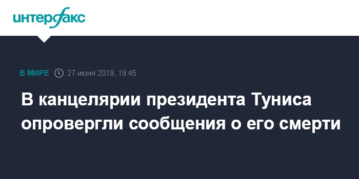 Москва. 27 июня. INTERFAX.RU - В канцелярии президента Туниса Беджи Каида Эссебси в четверг опровергли сообщения о его смерти.