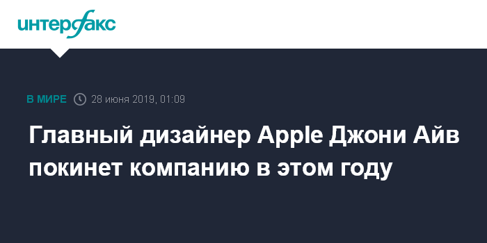 Москва. 28 июня. INTERFAX.RU - Главный дизайнер американской компании Apple Джонатан Айв покинет ее в течение 2019 года, сообщает в четверг газета Financial Times.