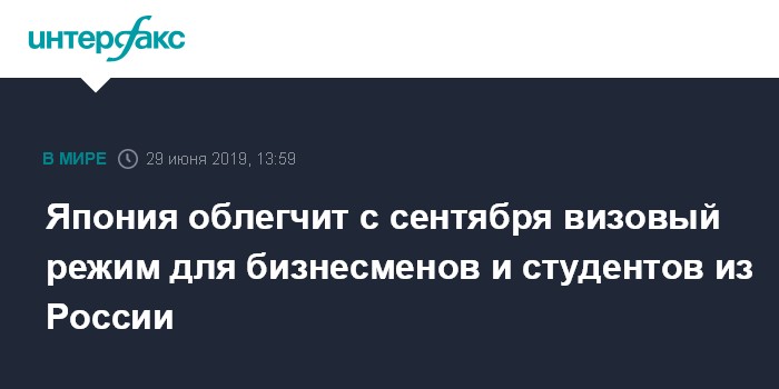 Москва. 29 июня. INTERFAX.RU - Визовый режим для посещения Японии осенью будет облегчен для российских бизнесменов и студентов, сообщил премьер страны Синдзо Абэ.