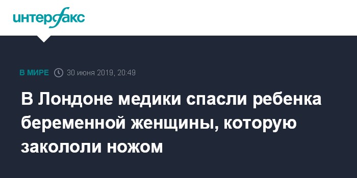Москва. 30 июня. INTERFAX.RU - Женщина, находившаяся на восьмом месяце беременности, была убита в Лондоне, ее закололи ножом. Как сообщает "Би-би-си", прибывшие медики приняли роды и смогли спасти ребенка погибшей.