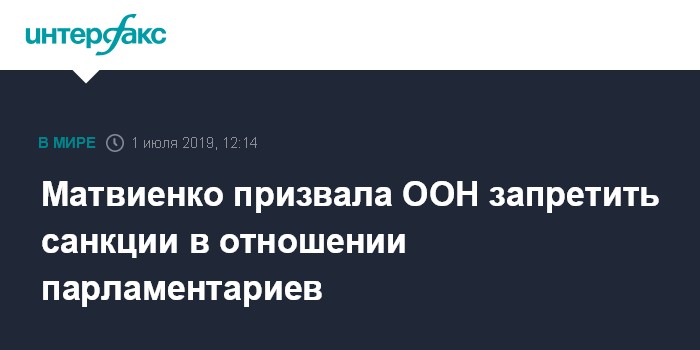 Москва. 1 июля. INTERFAX.RU - Спикер Совета Федерации Валентина Матвиенко призвала парламенты других стран добиться того, чтобы ООН своей резолюцией запретила введение санкции в отношении законодателей. Она заявила об этом на форуме "Развитие парламентаризма" в Москве.