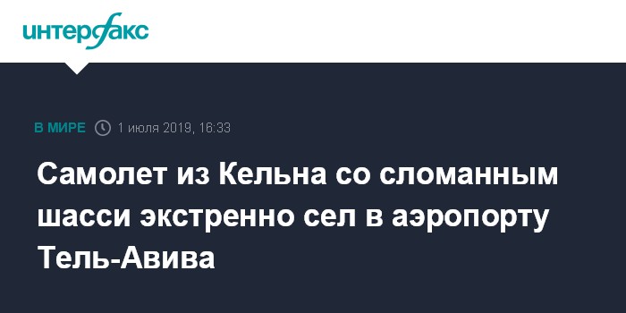 Москва. 1 июля. INTERFAX.RU - Вылетевший из Кельна самолет авиакомпании Electra Air, у которого оказалось повреждено шасси, экстренно сел в аэропорту имени Бен-Гуриона в Тель-Авиве, сообщает в понедельник газета Times of Israel.