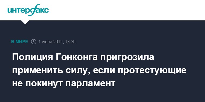 Полиция Гонконга пригрозила применить силу, если протестующие не покинут парламент