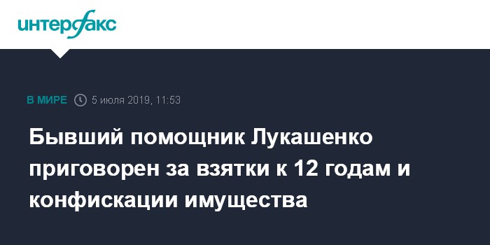 Бывший помощник Лукашенко приговорен за взятки к 12 годам и конфискации имущества