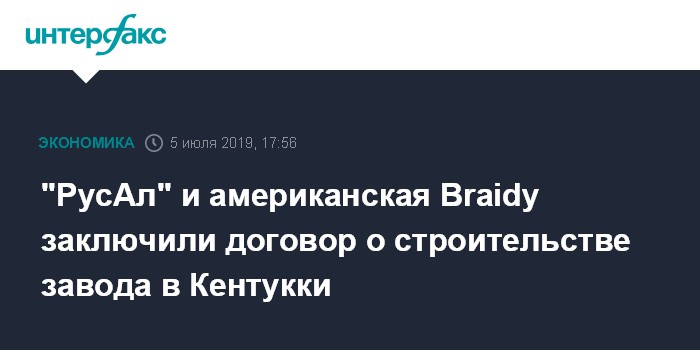 "РусАл" и американская Braidy заключили договор о строительстве завода в Кентукки