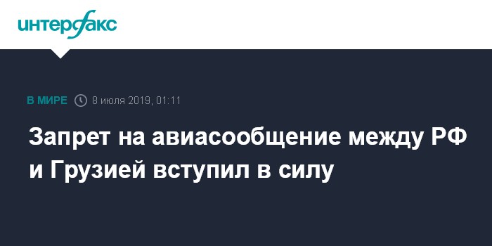 21 июня президент РФ Владимир Путин подписал указ о временном запрете российским авиакомпаниям выполнять с 8 июля прямые рейсы между РФ и Грузией. Затем Минтранс РФ уточнил, что запрет распространяется и на грузинских авиаперевозчиков.