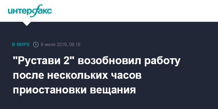 Москва. 8 июля. INTERFAX.RU - Частная грузинская телекомпания "Рустави 2" утром в понедельник возобновила работу после нескольких часов приостановки вещания.
