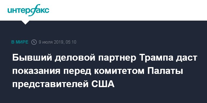 Бывший деловой партнер Трампа даст показания перед комитетом Палаты представителей США