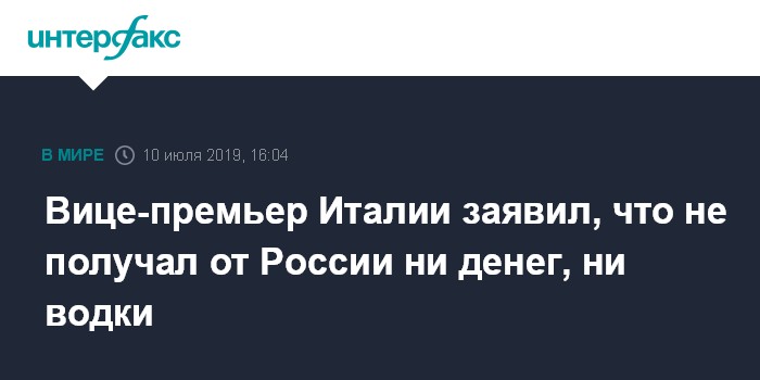 Вице-премьер Италии заявил, что не получал от России ни денег, ни водки