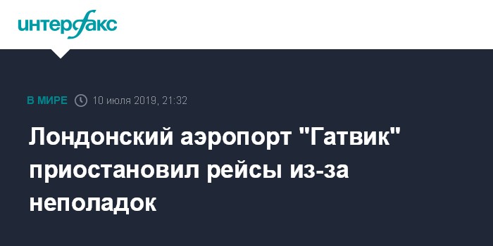 Москва. 10 июля. INTERFAX.RU - Сбой в диспетчерской башне вызвал проблемы в работе британского аэропорта "Гатвик", сообщается в среду на его сайте.