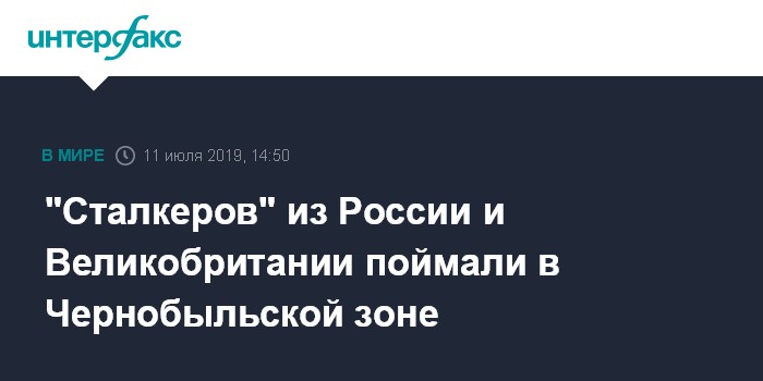 Москва. 11 июля. INTERFAX.RU - Украинская полиция задержала трех "сталкеров" на территории зоны отчуждения Чернобыльской АЭС, двое их них - граждане Великобритании, один - россиянин.
