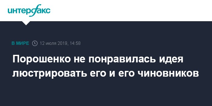 Москва. 12 июля. INTERFAX.RU - Лидер партии "Европейская солидарность", экс- президент Украины Петр Порошенко не одобрил идею нынешнего главы государства Владимира Зеленского расширить действия закона о люстрации.