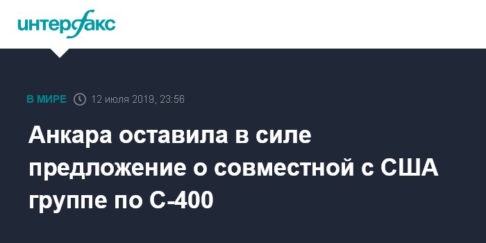 Анкара оставила в силе предложение о совместной с США группе по С-400