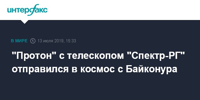 Москва. 13 июля. INTERFAX.RU - Ракета-носитель "Протон-М" с космической обсерваторией "Спектр-РГ" стартовала с космодрома Байконур в Казахстане.