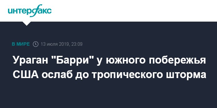 Ураган "Барри" у южного побережья США ослаб до тропического шторма