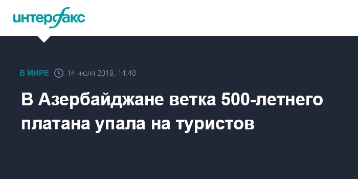 Москва. 14 июля. INTERFAX.RU - В субботу перед Дворцом шекинских ханов на северо-западе Азербайджана упала ветвь пятисотлетнего платана, говорится в сообщении Государственного агентства по туризму.