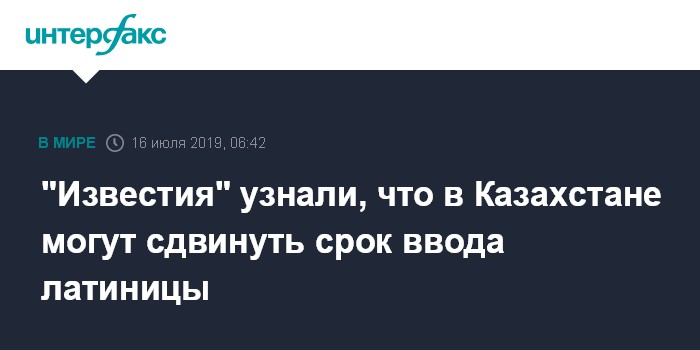 Москва. 16 июля. INTERFAX.RU - Переход с кириллического на латинский алфавит в Казахстане может затянуться до 2035 года вместо установленного президентом срока в 2025 году, сообщает во вторник газета "Известия" со ссылкой на высокопоставленных источников в дипкругах страны.