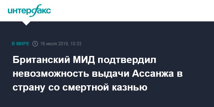 Британский МИД подтвердил невозможность выдачи Ассанжа в страну со смертной казнью