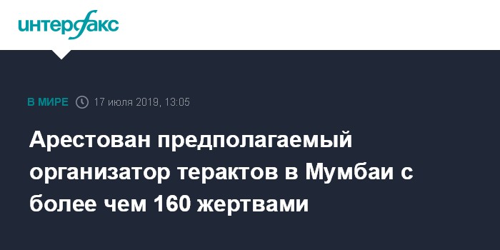 Арестован предполагаемый организатор терактов в Мумбаи с более чем 160 жертвами