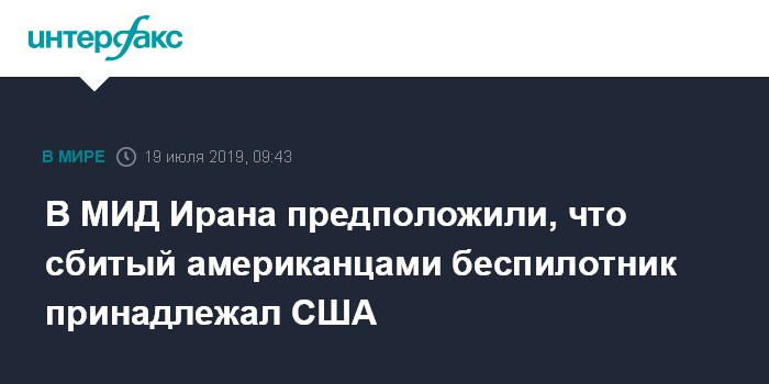 В МИД Ирана предположили, что сбитый американцами беспилотник принадлежал США