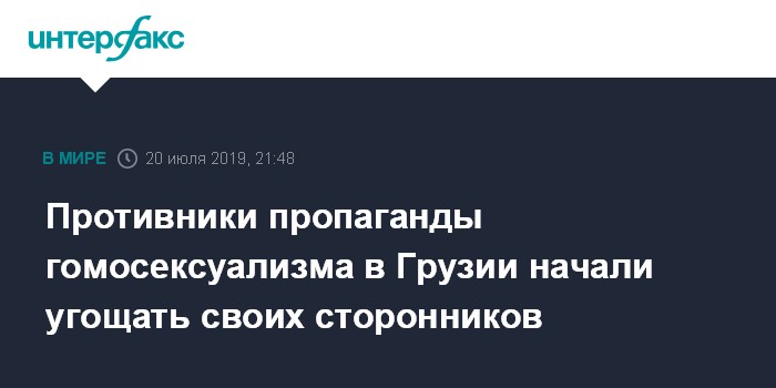 Москва. 20 июля. INTERFAX.RU - Возле строящегося храма Иверской Богоматери в Зугдиди (административный центр в Западной Грузии) противники ЛГБТ-сообщества в субботу начали сбор подписей за принятие закона о запрете пропаганды гомосексуализма.