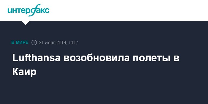 Москва. 21 июля. INTERFAX.RU - Немецкий авиаперевозчик Lufthansa возобновил полеты в Каир, сообщает в воскресенье Deutsche Welle.