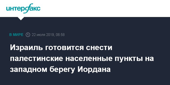 Израиль готовится снести палестинские населенные пункты на западном берегу Иордана