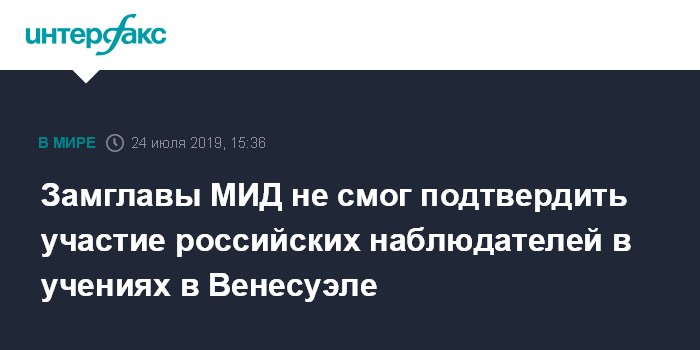 Москва. 24 июля. INTERFAX.RU - Замминистра иностранных дел России Сергей Рябков не получал информацию об участии российских наблюдателей в военных учениях в Венесуэле.