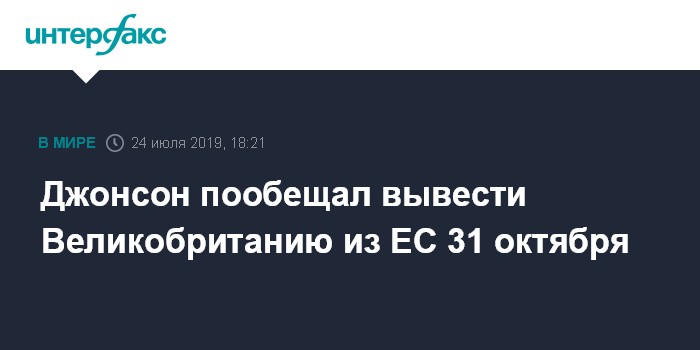 Москва. 24 июля. INTERFAX.RU - Борис Джонсон, выступая в среду с программной речью после назначения премьер-министром Великобритании, пообещал во что бы то ни стало вывести страну из ЕС 31 октября.