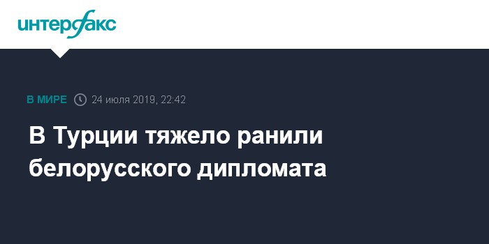 Москва. 24 июля. INTERFAX.RU - Советник посольства Белоруссии в Турции получил огнестрельные ранения после нападения психически неуравновешенного бывшего военнослужащего, дипломат находится в тяжелом состоянии в больнице, сообщил агентству "Интерфакс" начальник управления информации и цифровой дипломатии, пресс-секретарь МИД Белоруссии Анатолий Глаз.