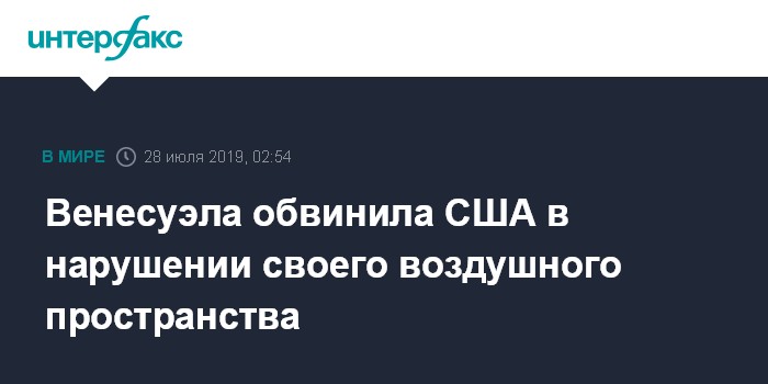 Москва. 28 июля. INTERFAX.RU - Разведывательные самолеты США вторглись в воздушное пространство Венесуэлы, говорится в сообщении Стратегического оперативного командования Вооруженных сил Венесуэлы (CEOFANB) в твиттере.