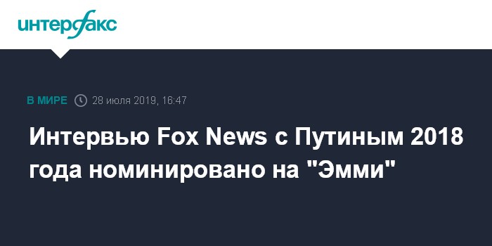 Интервью Fox News с Путиным 2018 года номинировано на "Эмми"